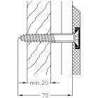 Zur spreizdruckfreien Montage von Stützklappgriffen, Wandstützgriffen, Duschklappsitzen und Rückenlehnen mit Montageplatten an Wänden aus Lochsteinen oder Vollbaustoffen wie: Hochlochziegel HLz 12, Kalksandlochstein KSL 12, Hohlblockstein Hbl4, Hbn4, andere Lochsteine, Beton, Leichtbeton, Vollziegel Mz 12, Kalksand-Vollstein KS 12, Naturstein mit dichtem Gefüge, Vollbims. Lieferung mit 4 Innengewindehülsen aus Stahl Ø 15 x 75 mm/M10, 4 Siebhülsen Ø 20 x 100 mm, 4 Senkschrauben M10 x 30 mm aus Edelstahl A4-AISI 316, ohne Injektions-Kartusche mit Verbundmörtel 145 cm3. Für die Rückenlehne mit Montageplatte wird das Montageset 2 mal benötigt. Zur Bestimmung des geeigneten Befestigungsmaterials muss der Verankerungsgrund geprüft werden. Das Montagematerial ist bauaufsichtlich zugelassen. Vor der Montage muss die Montageanleitung beachtet werden. Die Montage ist vom Fachmann auszuführen.