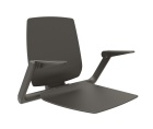 Zum Einhängen in Cavere Duschhandläufe 584 mm breit, 640 mm tief, 574 mm hoch, hochgeklappt platzsparende 230 mm tief. Trägerkonsole, Wandplatte und Armlehnen aus Aluminium, kratzfeste Pulverbeschichtung, Sitzfläche und Rückenlehne aus thermoplastischem Kunststoff Polypropylen, lieferbar in den Ascento Farben, ergonomisch geformte Sitzfläche und Rückenlehne mit abgerundeten Außenkanten, modular erweiter- und kombinierbar, einfache Montage oder Demontage durch Einhängen in Cavere/Inox/Nylon Care Duschhandläufe, entspricht DIN 18040-1 und ÖNORM B1600, verdeckte Verschraubung, maximale Belastbarkeit: Sitz 150 kg, Armlehnen 50 kg. für Duschhandlaufoberkante 850 mm, nach DIN Norm.